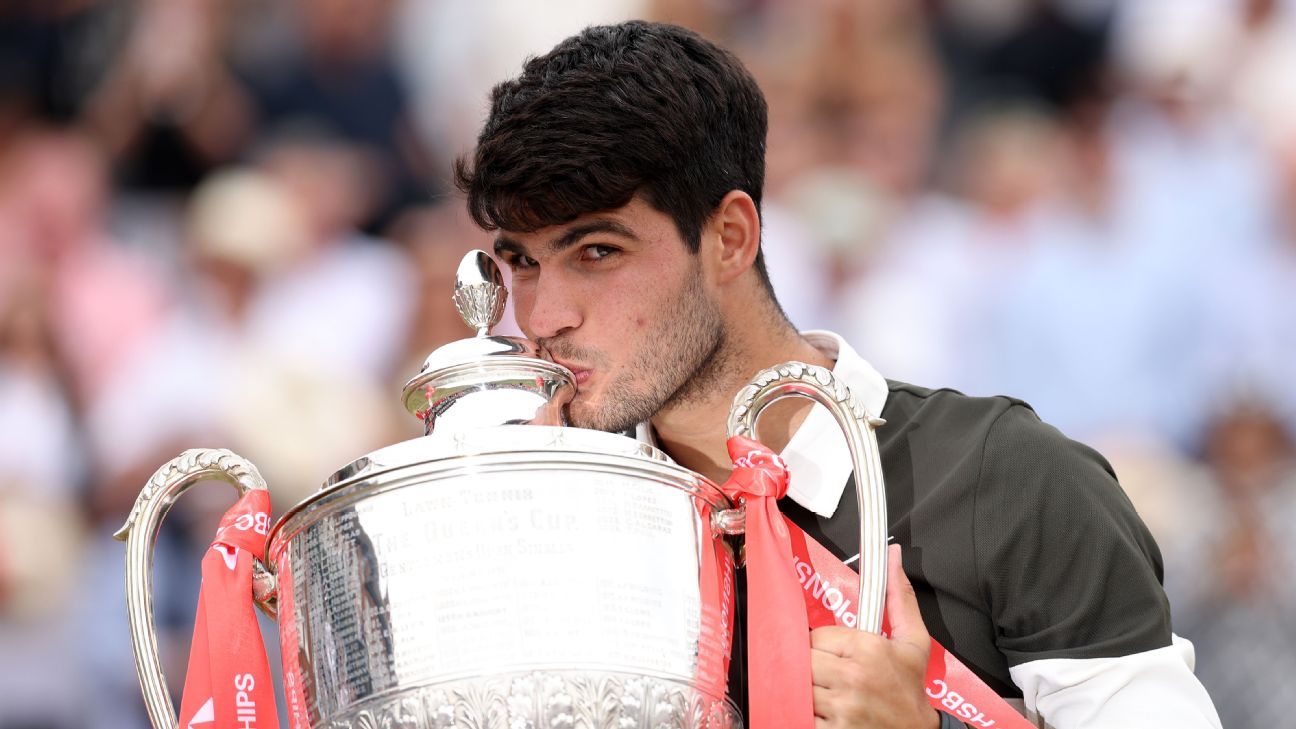 High seed Carlos Alcaraz edged Czech Jiri Lehecka 7-5, 6-7 (5), 6-2 on Sunday to say his second Queen’s Membership title and ship out a robust assertion forward of his Wimbledon protection.