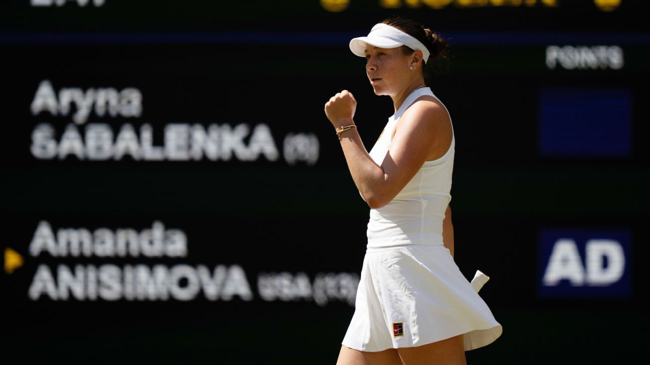 “This does not really feel actual proper now, actually,” Anisimova then stated to the group. “Aryna’s such a tricky competitor and I used to be completely dying on the market. And yeah, I do not understand how I pulled it out. I imply, she’s such an unbelievable competitor and she or he’s an inspiration to me and I am positive so many different folks. We have had so many robust battles, and to come back out on high at present and be within the remaining of Wimbledon is simply so extremely particular.”