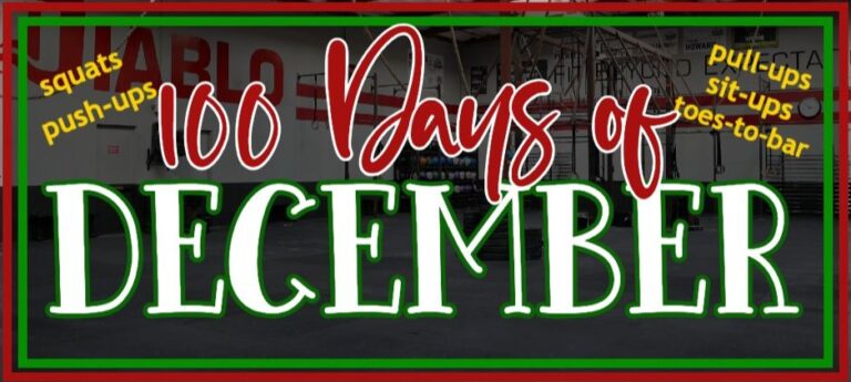 (IT’S OK TO START NOW!)Right here’s the way it works: on daily basis of December, full 100 repetitions of any mixture of Squats, Push Ups, Pull-Ups, Sit-Ups or Toes-to-Bar. You’ll be able to select any of the actions, unfold the reps out over the total day, and break them up nevertheless you need. You may make it as onerous (or simple) as you need. Simply finish the day with 100 whole reps accomplished.I’ve been splitting my reps up – half within the early AM and half within the night. This isn’t onerous and scaling the actions is cool: ie, ring rows for pull ups or, bench push ups for push ups. Right here’s some examples: