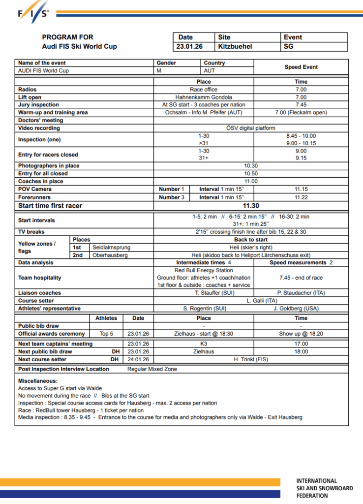 The lads’s super-G will get underway on Friday, January twenty third, with the beginning scheduled for five:30 a.m. EST / 2:30 a.m. PST / 10:30 UK time