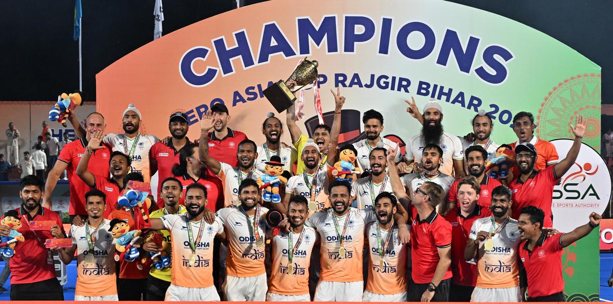 The Indian males’s hockey crew beat South Korea 4-1 within the last to elevate the Asia Cup trophy and qualify for subsequent 12 months’s World Cup, in Bihar on September 7, 2025. India ended an eight 12 months wait to be topped the continental champion, successful 4-1 in opposition to defending champion Korea within the last of the Asia Cup and assuring itself of a spot on the 2026 World Cup.