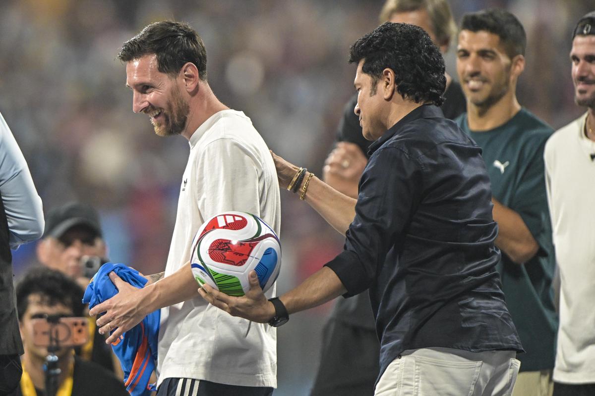 In Hyderabad, Telangana Chief Minister A. Revanth Reddy scored what many in political circles imagine an ideal political aim, as international soccer icon Lionel Messi watched on, alongside his boss and Chief of the Opposition within the Lok Sabha Rahul Gandhi, the person who as soon as positioned his full political religion in Revanth. In Mumbai, India’s cricket legend Sachin Tendulkar walked throughout the Wankhede Stadium outfield in the direction of Argentina’s soccer celebrity Lionel Messi on December 14, 2025 night that will probably be etched in Mumbai’s sporting folklore. Tendulkar offered Messi with the enduring 2011 World Cup jersey, bearing his surname and the No. 10 on the again.
