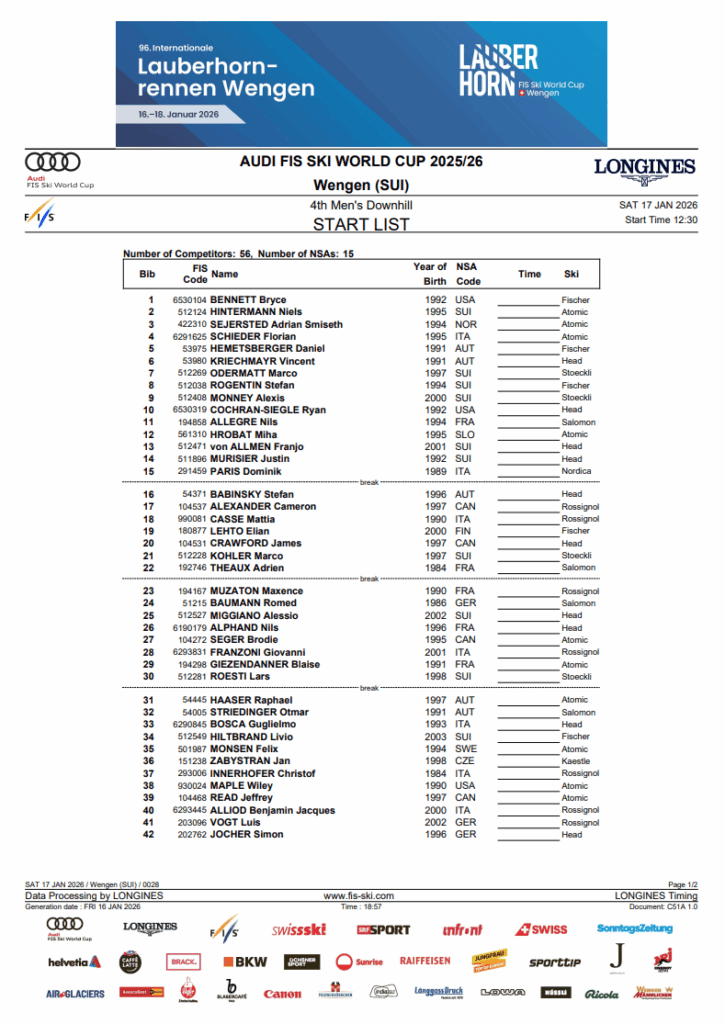 Marco Odermatt arrives because the pre-race favourite. He’s the two-time defending World Cup downhill season champion (2024, 2025) and he leads the 2025–26 downhill standings once more. But downhill stays brutally unforgiving.